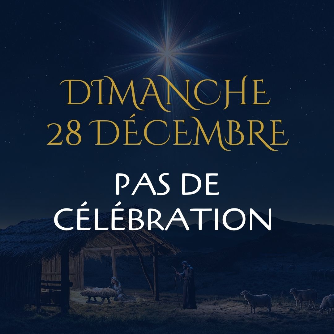 Important qu’il n’y aura pas de réunion le dimanche 28 décembre. Nous vous invitons à profiter de ce dimanche pour prendre du temps en famille et amis.